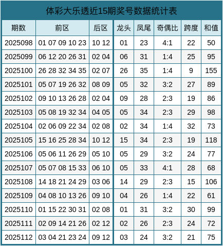 其中龙头号码为03,凤尾号码为24,跨度为21,和值为75。