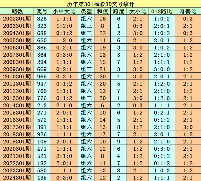 在积年同时开奖中,组三出现4次,组六开出19次,客岁同时开出组六,本年同时看好组六再出。